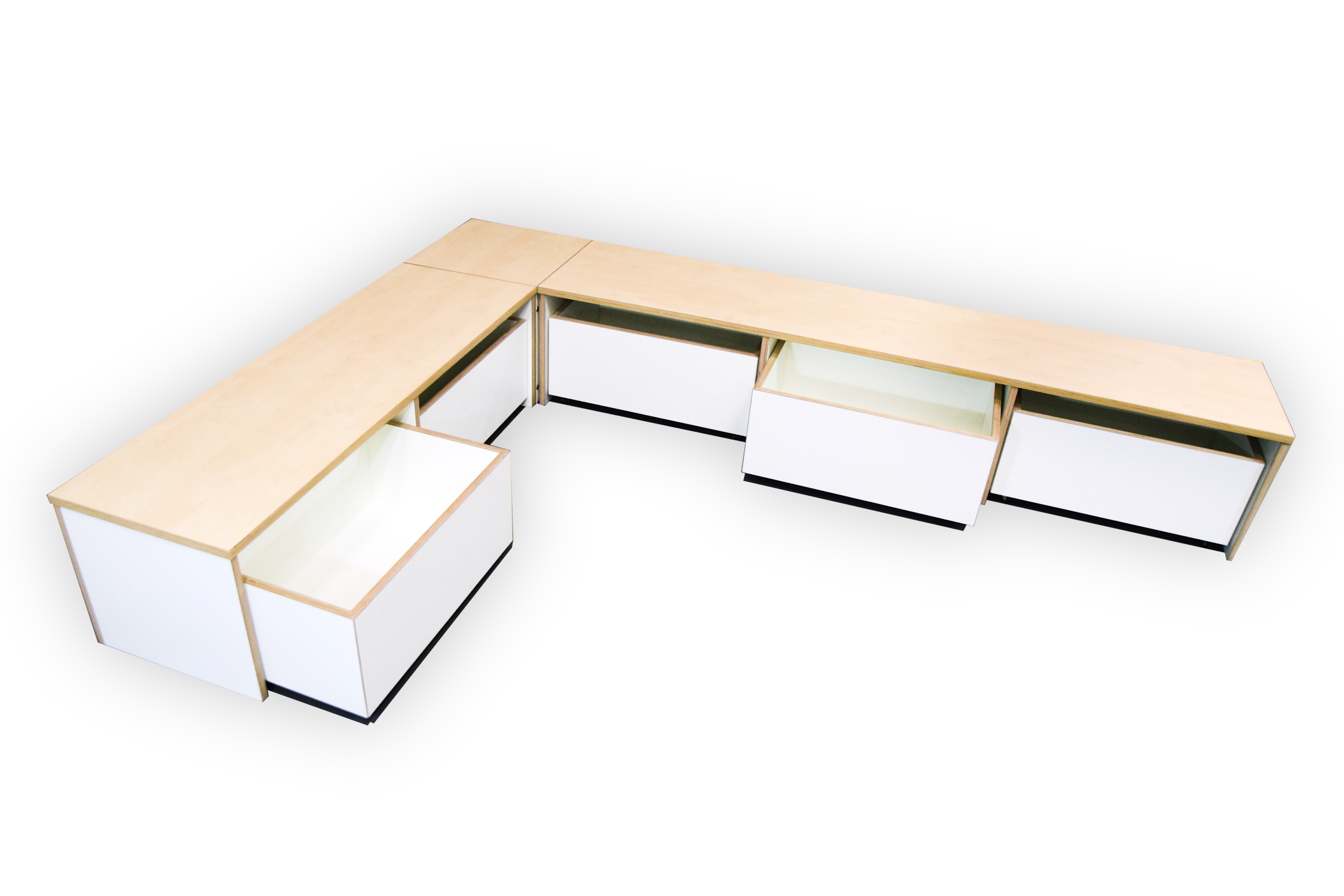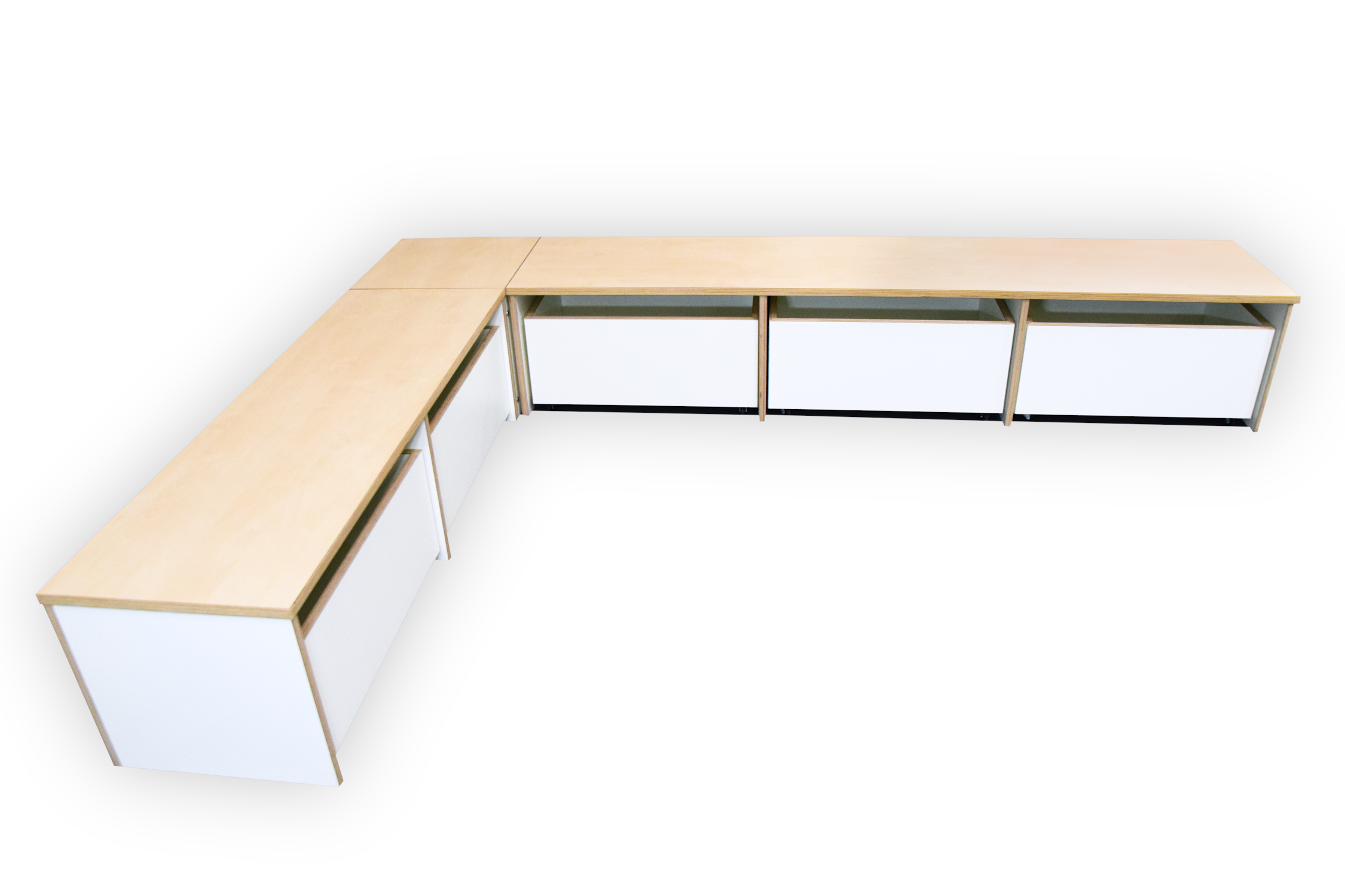 Dit meubel is opgebouwd uit 18 mm berken multiplex met witte HPL toplaag.