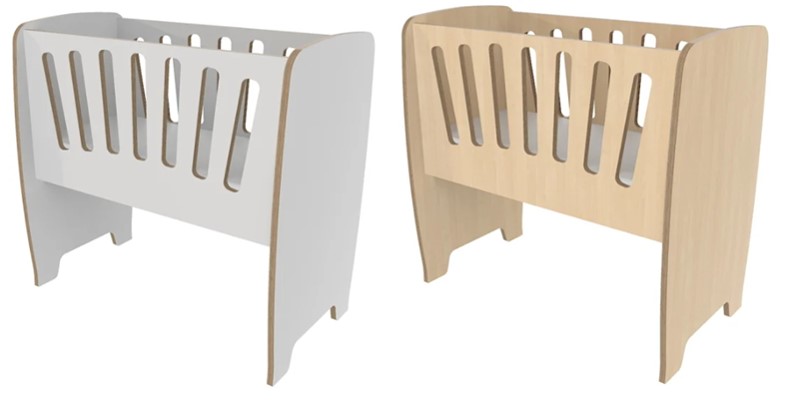 Het wiegje is leverbaar in de kleur wit en berken decor.