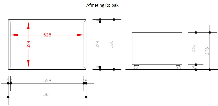 Voor afmeting Rolbak zie bijgaande foto.