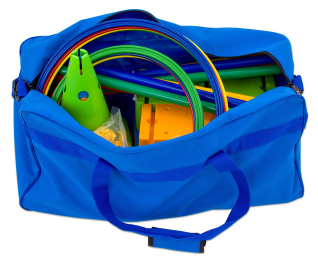 Dit maakt het gemakkelijk om de best practice- circuits voor vaardigheid, estafettespellen, circusterrein of rallytracks in te stellen . Dankzij de praktische opbergtas kan de set overal worden meegenomen en wordt alles snel en veilig opgeborgen.