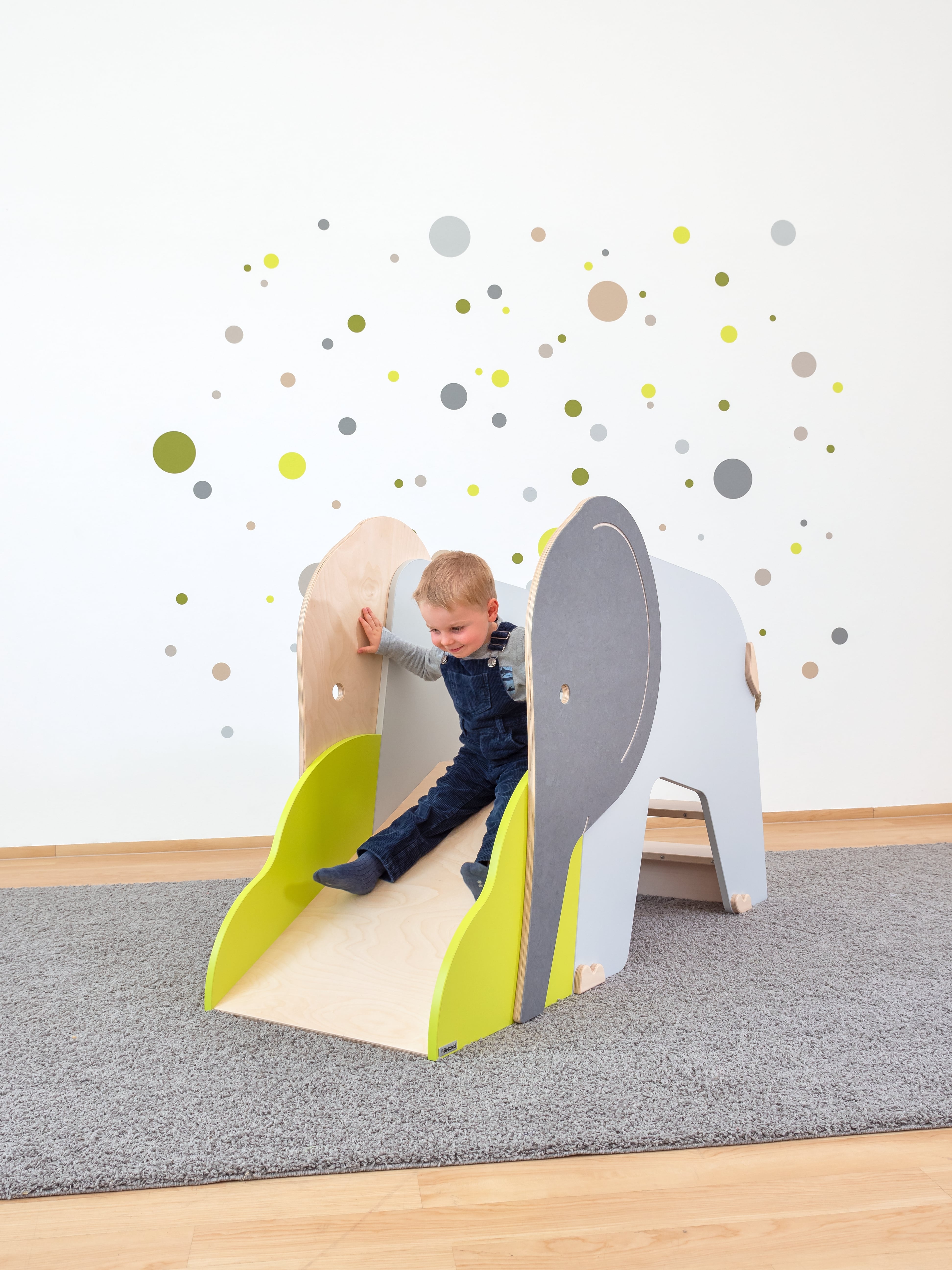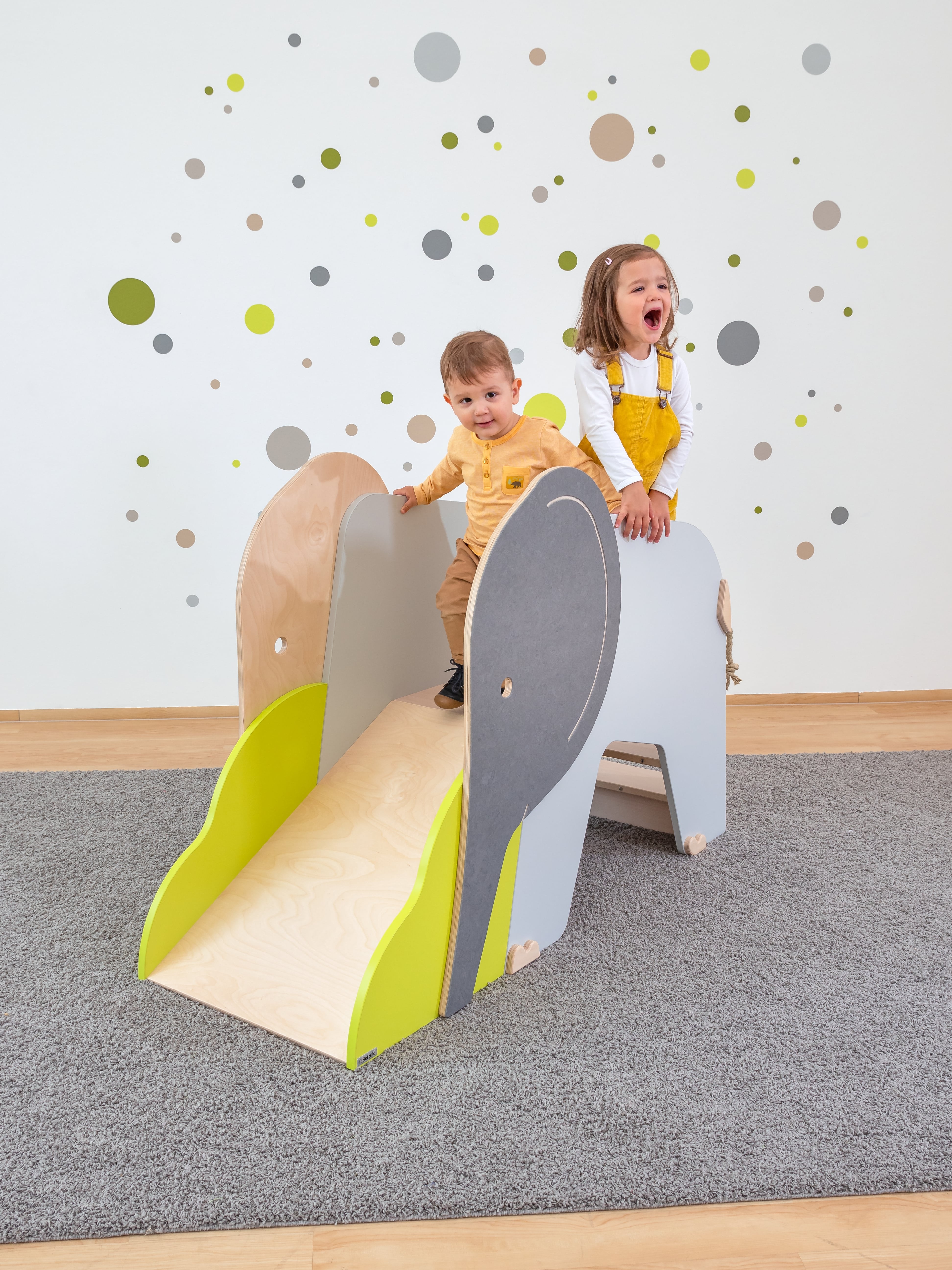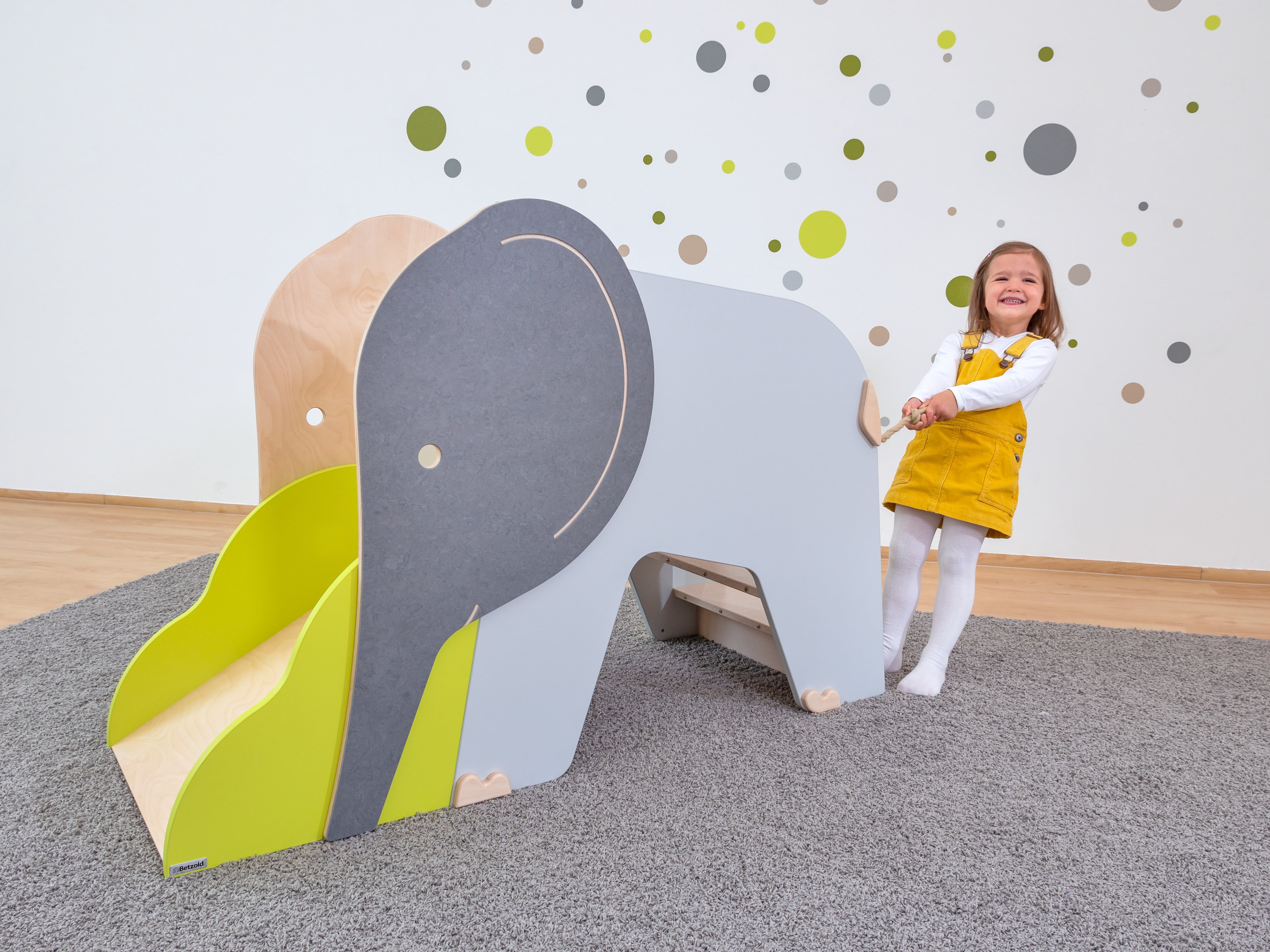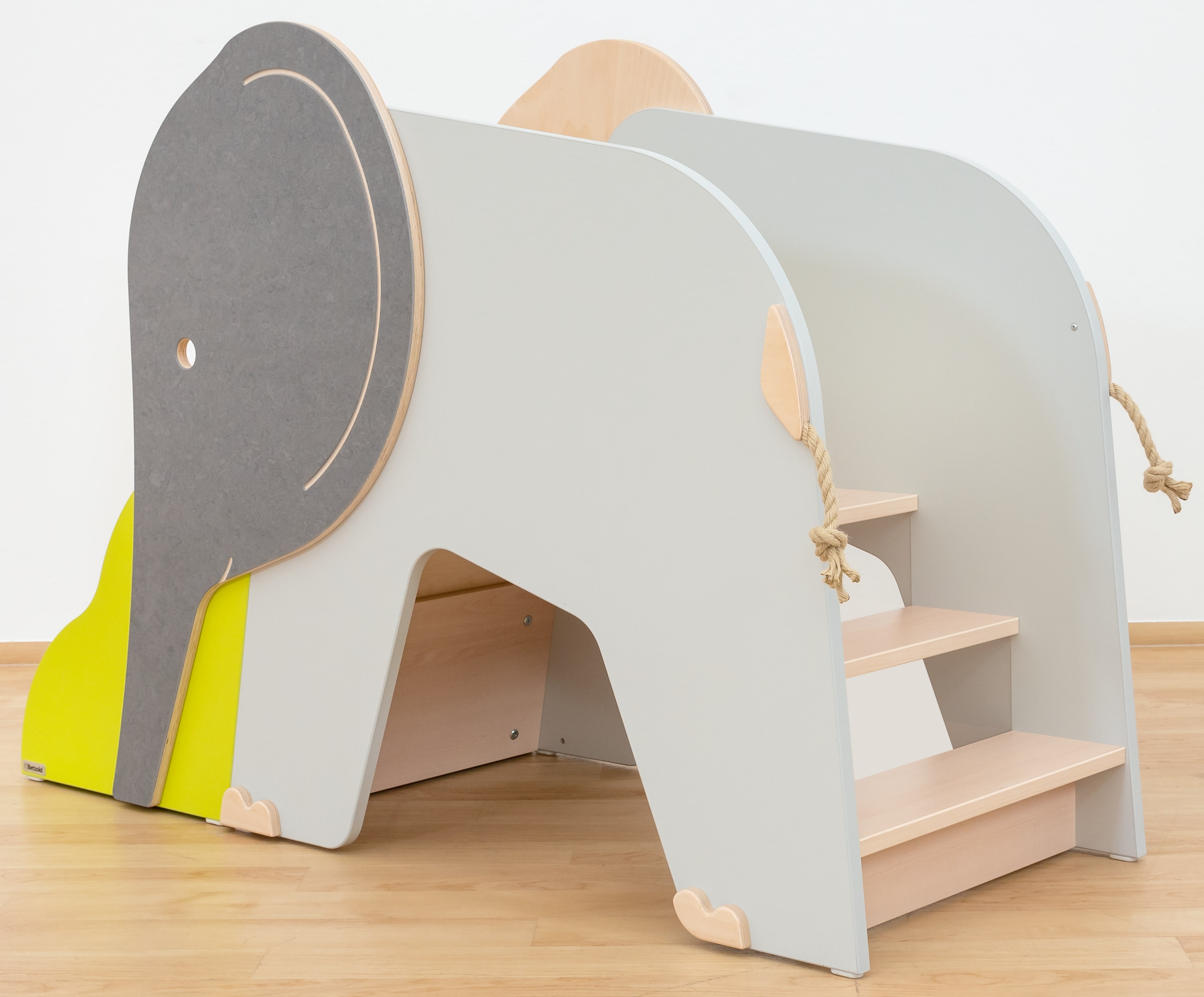 Het Olifantje van EduCasa is een vrolijke Speelburcht met glijbaan, trappetje en kruipruimte.