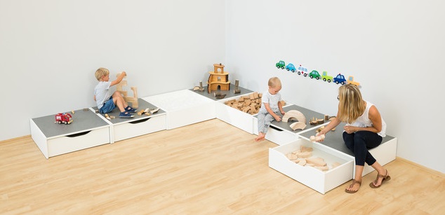 | Speelplatform/ Parcoursset Ferdinand met stuk voor een ballenbak/blokken enz inclusief extra opslagruimte Individueel en zelf ontworpen Een podiumlandschap voor de kinderopvang, dat altijd nieuw en anders ingevuld kan worden. De platform Ferdinand met het tijdloze witte decor is een echte troef met veel afwisseling. Veelzijdig en altijd nieuw Doeken, ballen of zelfs blokken, bouwmaterialen kunnen in de twee voetstukvierkanten worden gevuld. Zo creëer je een ballenbad met altijd nieuwe inhoud in een oogwenk. Alle zintuigen van de kinderen zijn aangesproken. Overigens kan het begrip van kleuren en vorm vrij speels worden bevorderd. Voor het bewaren van de inhoud van de ballenbaden zijn sokkels met rolboxen in de set inbegrepen. Hier zijn natuurlijk alle andere speelgoed zoals boeken, bouwstenen en kleine voertuigen hun plaats. Geniet van de voordelen van linoleum van hoge kwaliteit De podia zijn uitgerust met linoleumvloeren van hoge kwaliteit. Deze antibacteriële en geluidsarme coating is wonderbaarlijk eenvoudig te reinigen en te desinfecteren. Hij is ook antistatisch. Met deze eigenschappen is het ideaal voor gebruik in kinderopvang. Combineer en complementeer De voetstukset Ferdinand hoeft niet te worden vastgeschroefd of vastgeklemd en kan worden opgesteld op basis van uw kameromstandigheden. De antislip-randen zorgen voor veiligheid en stabiliteit van alle elementen. De set is alleen beschikbaar in de gecoördineerde, afgebeelde kleuren. Natuurlijk kan de sokkel op elk moment worden uitgebreid met sokkels uit ons diverse assortiment. belangrijk: De voetstukelementen zijn exclusief ontwikkeld voor gebruik door baby- en kleuterkinderen (0-6 jaar). Daarom is het maximale laadvermogen 120 kg per element. De vloer van de rolboxen van de ladeblokken mag een maximale belasting van 60 kg niet overschrijden. levering 1x voetstuk - vierkant, decor wit, 24 cm, linoleum grijs, (hxbxd) 24x75x75 cm 2x voetstuk - vierkant om te vullen, decor wit, 24 cm, (hxbxd) 24x75x75 cm 4x sokkel met rolkist, witte decor, 24 cm, linoleum grijs, (hxbxd) 24x75x75 cm. te gebruiken: Aanbevolen leeftijd: 0-6 jaar textuur: Materiaal: Hout Afmetingen / gewicht: Gewicht incl. Verpakking: 172 kg |