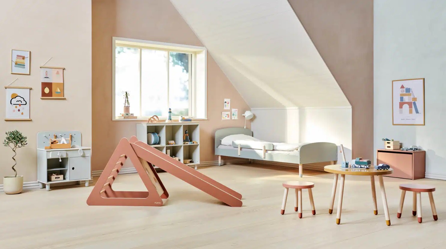 De ruimte tussen de driehoek is een geweldige schuilplaats voor kleine avonturiers.