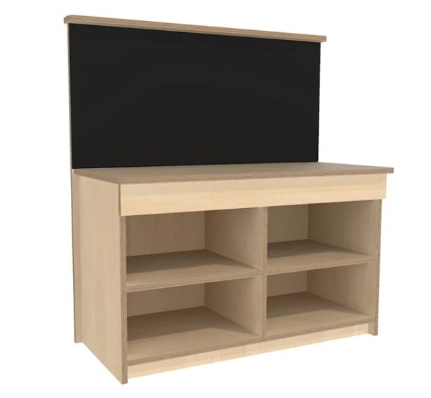De achterwand is voorzien van een krijtbord.