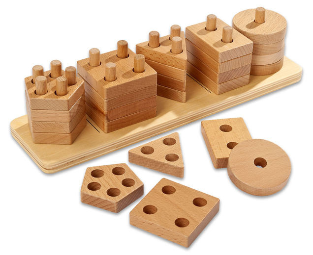 | Zintuiglijk materiaal, montessorie 12 verschillende 'plug-in' spellen 1-werkingsprincipe Objectbestendigheid en vormbestendigheid Vormen, maten, hoogten en hoeveelheden vastleggen en toewijzen In de eerste twee jaar verwerven baby's verschillende sensomotorische mogelijkheden. Ze leren door te herhalen, te proberen en aan te raken. Het materiaal (beukenhout) maakt indruk met het "1-functieprincipe": er is geen afleiding door kleur, kleurrijke indrukken of geluid. Het concentratievermogen wordt geëist en opgebouwd door een activiteit uit te voeren. Concentratie op de essentie Het feit dat het materiaal zichzelf terugtrekt in vorm en kleur, overweldigt het kind dat het speelt niet. Door de onafhankelijke actie en het zelfcontrolerende systeem kunnen de kinderen begrijpen wat ze hebben geleerd en begrijpen. Zo zullen uw kinderen hun eerste ervaringen hebben, Objectbestendigheid en vormbestendigheid. Materiaal: beuken Afmetingen: plaatsingsvormen - cirkel: Ø pad 22,3 cm, cirkels: Ø 4,9 - 8,9 cm - vierkant : pad 22,2 cm, vierkanten: 4,7 - 8,5 cm - driehoek: Zijlengte 22,2 cm. Driehoeken: zijkant lengte 8,7 cm Plug-in spelvormen - pad 30,3 cm, breedte 6,8 cm - cirkel: Ø 4,9 cm - rechthoek: 4,8 cm, breedte 3 cm Plug vierkant : pad 30,3 cm, breedte 6,8 cm; Vierkant: 5 cm Driehoekinzet : kussen 33,5 cm, breedte 6,8 cm; Driehoek: hoogte 5 cm, steeklengte 5,7 cm insteekcirkel: Pad 30,3 cm, breedte 6,8 cm, cirkel: Ø 4,9 cm plugspeelvormen - pad 36,7 x 31,5 cm - vierkant: grootste 8,2 cm, hoogte 5,5 cm - driehoek: grootste Lengte 12,1 cm, hoogte 10,2 cm, diepte 5,5 cm - cirkel: grootste Ø 8 cm puzzelvormen - basis 22,5 cm - driehoeken: 10 x 14 cm - vierkant 4,9 x 4,9 cm - Cirkel: Ø 5 cm Stapelspel cirkel Totale hoogte : 21,8 cm Stapelspel driehoek Totale hoogte : 23 cm Stapelspel Vierkant Totale hoogte : 22,3 cm Gegevens & feiten te gebruiken: Leeftijd vanaf:1 jaar textuur: Primair materiaal:hout Afmetingen / gewicht: Totaal gewicht:9 kg |