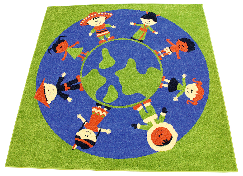 Een vloerkleed met kinderen van over de hele wereld. Een geweldige plek om te spelen.