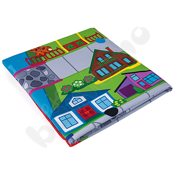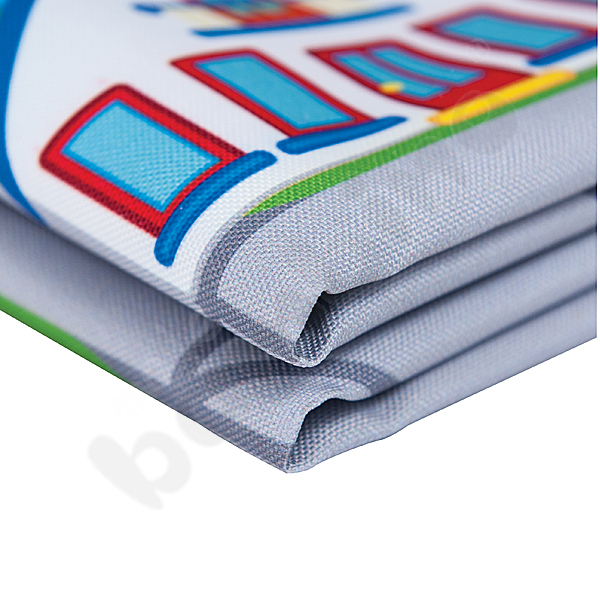 Het vloerspel is gemaakt van stevige stof, die gewassen kan worden een wasmachine (laagste termperatuur / geen kookwas / geen centrifuge.
