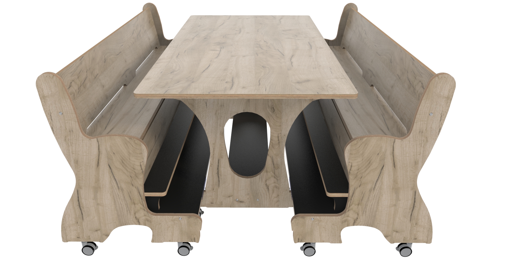 Hoogzit tafel L150 x B80 cm grey craft oak met 2 banken Tangara Groothandel voor de Kinderopvang Kinderdagverblijfinrichting