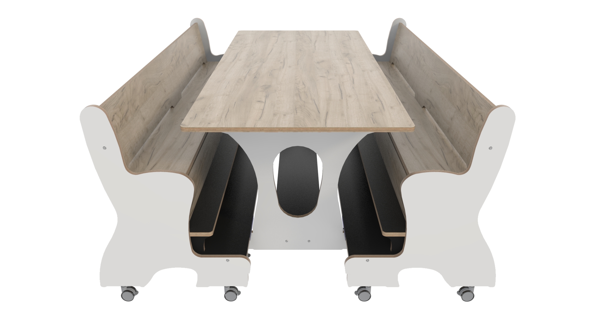De magneetkoppeling zorgt er ook voor dat de meubels als 1 geheel te verplaatsen zijn bij het schoonmaken.