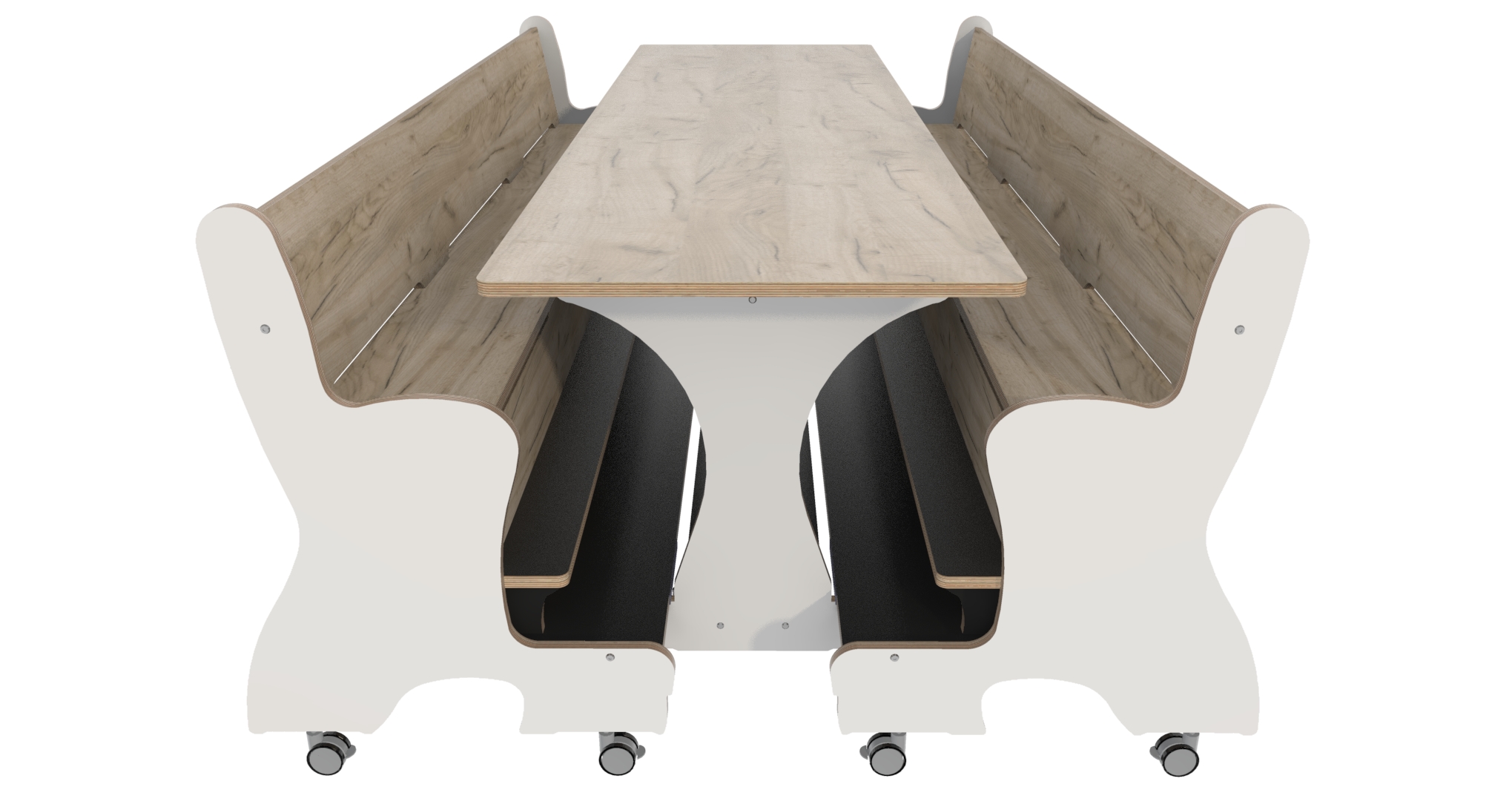 Hoogzit tafel L220 x B64 cm Grey craft oak en 2 banken Tangara Groothandel voor de Kinderopvang Kinderdagverblijfinrichtin