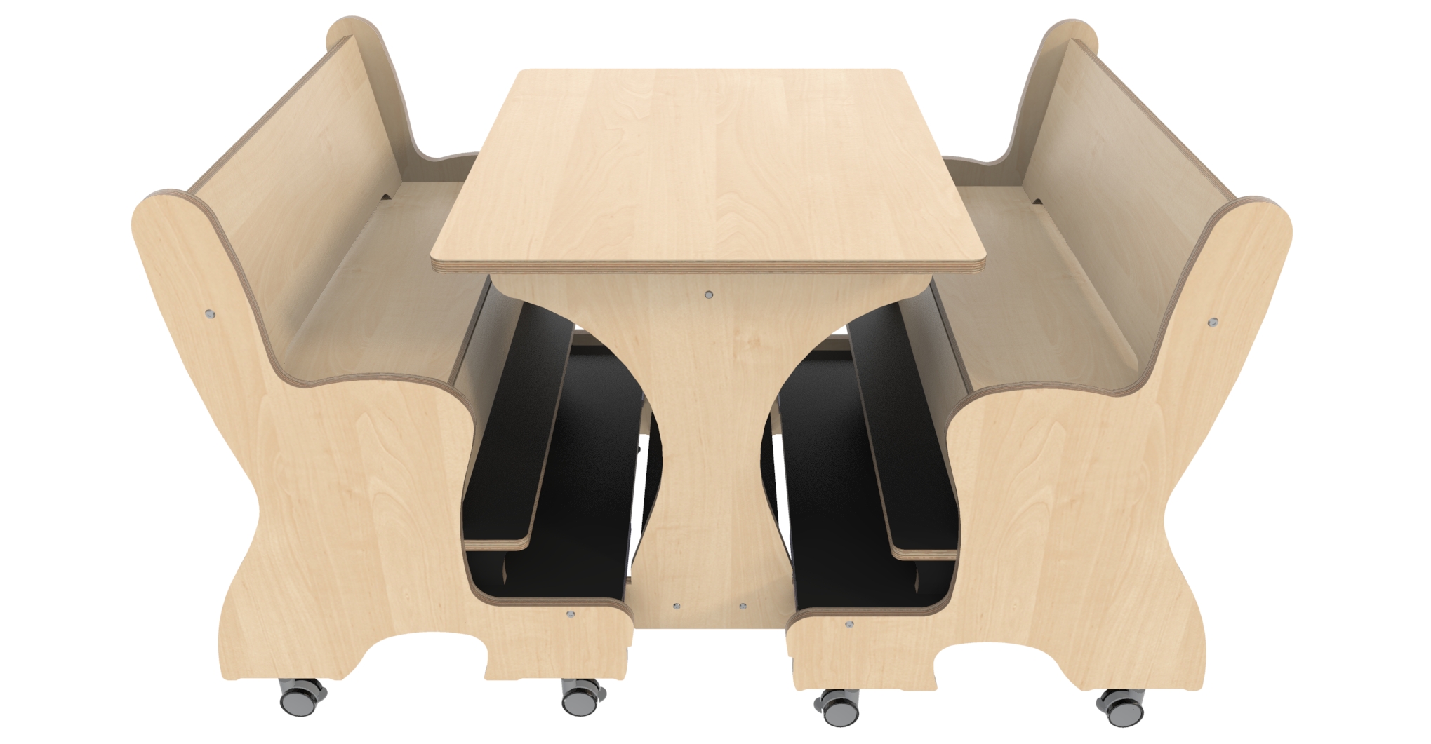 Hoogzit tafel L75 x B64 cm Berken met 2 banken Tangara Groothandel voor de Kinderopvang Kinderdagverblijfinrichting