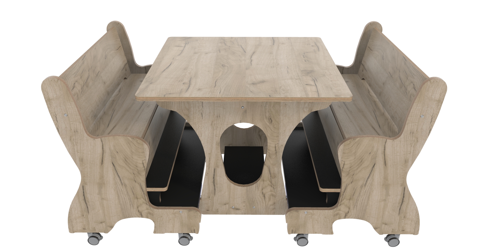 De magneetkoppeling zorgt er ook voor dat de meubels als 1 geheel te verplaatsen zijn bij het schoonmaken.
