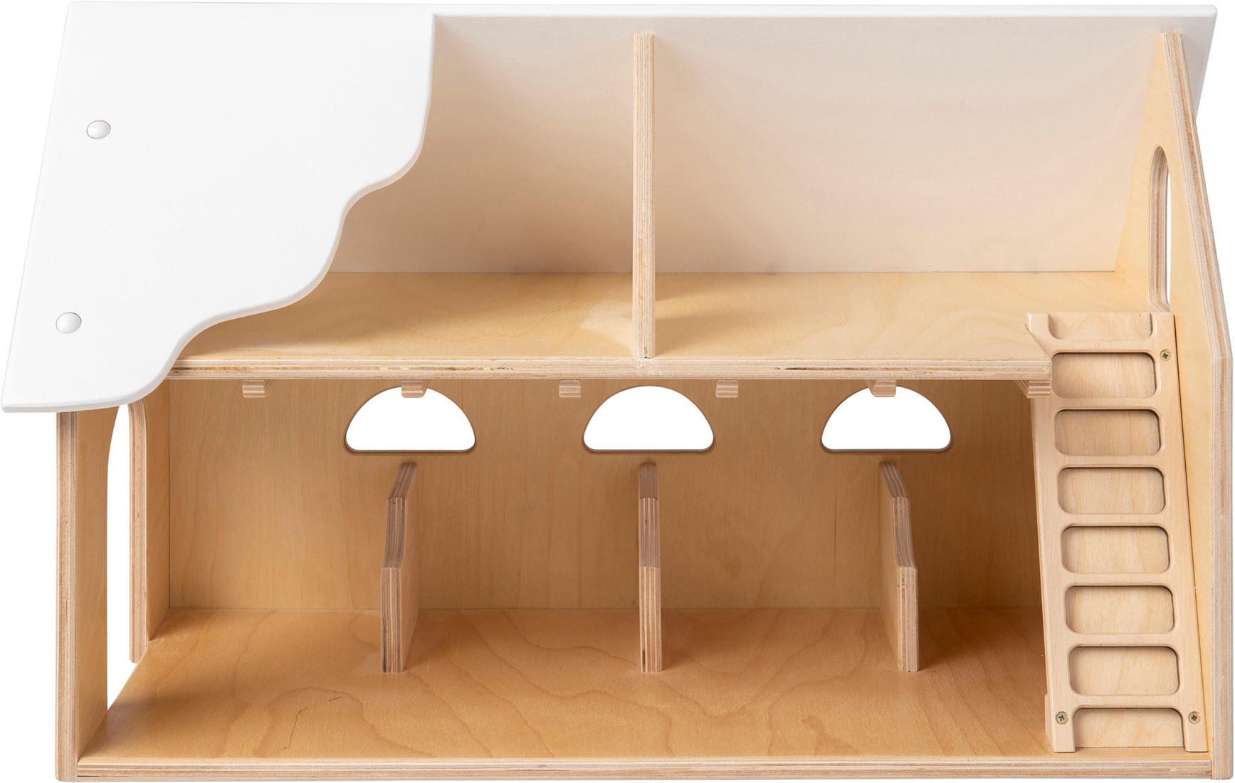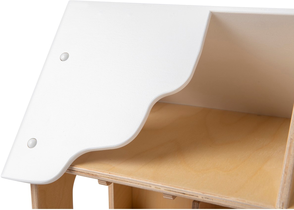 Het dak is aan de voorkant voor een groot deel open zodat er van meerdere kanten gespeeld kan worden met deze boerderij.