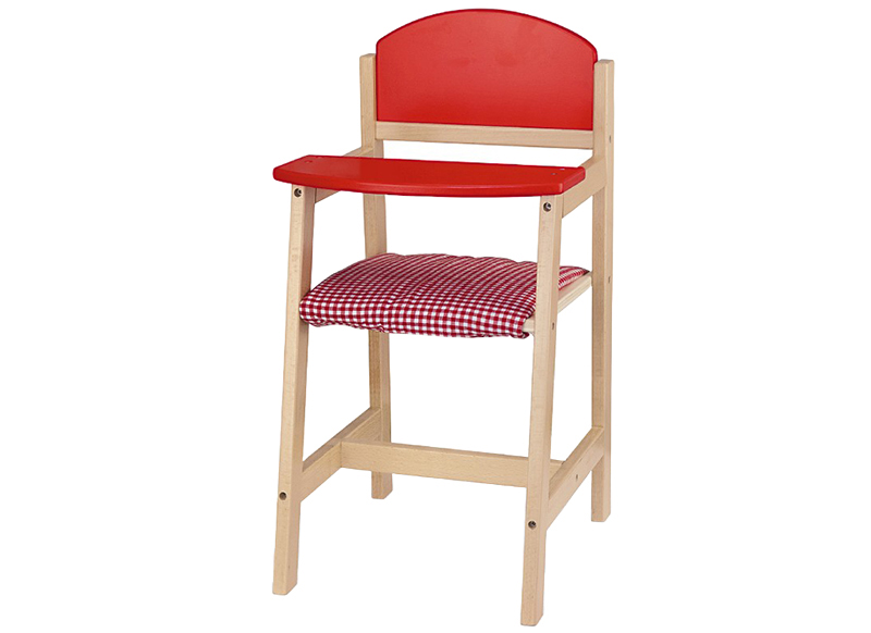 Budgetvriendelijke hoge eetstoel voor de poppenhoek.