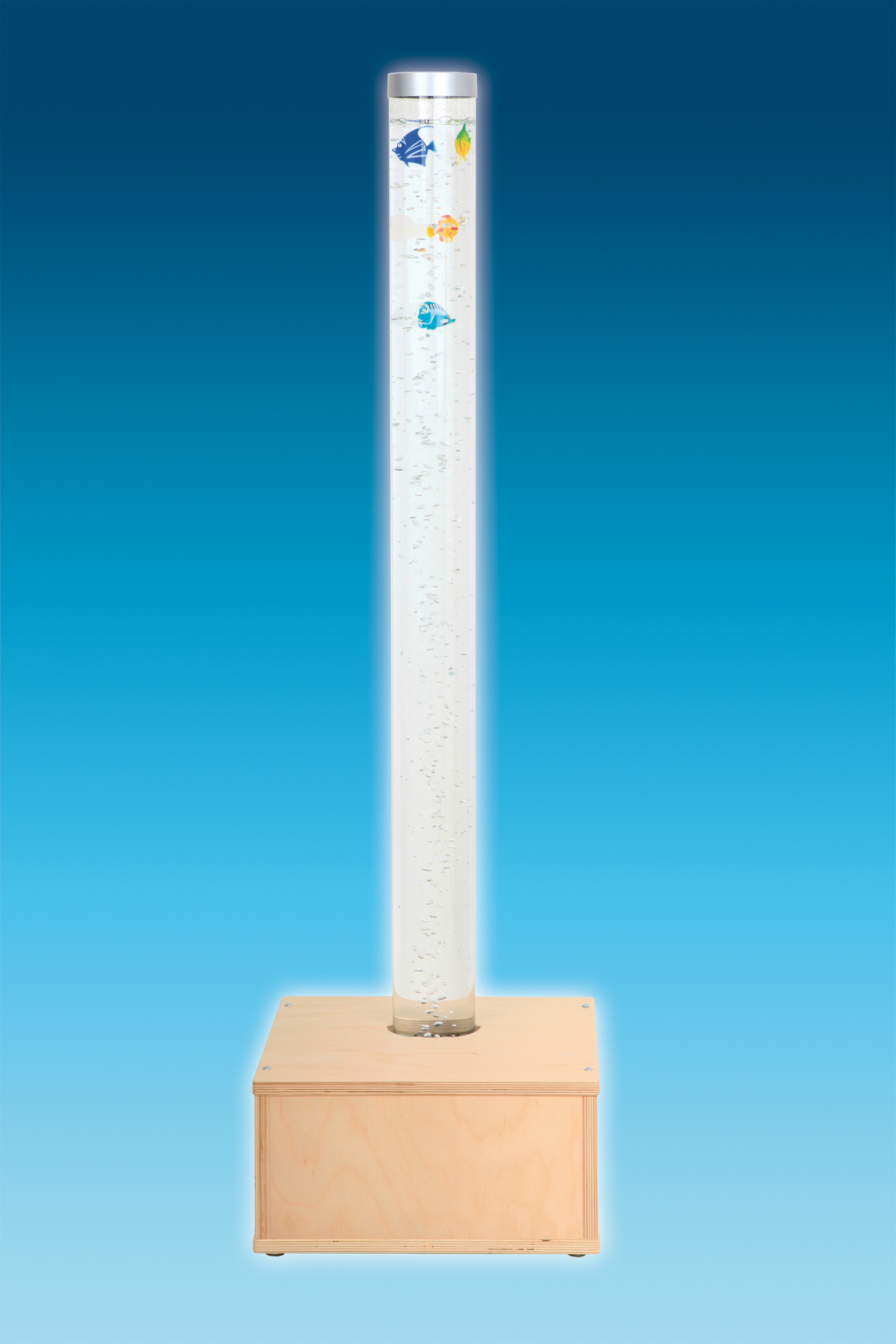 De bubbelunit heeft een hoogte van 130 cm en een diameter van 10 cm.