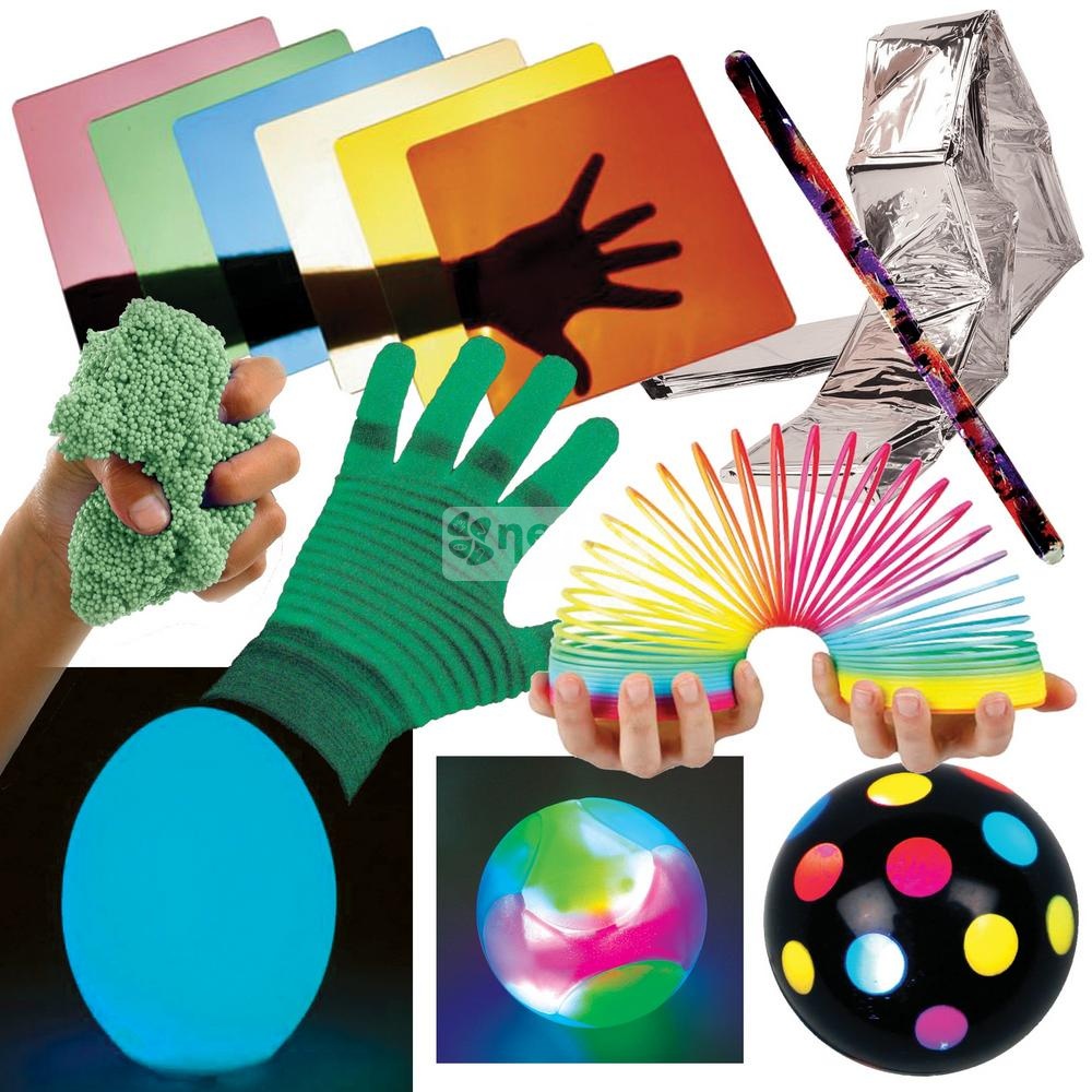 Bevat een Foliedeken, oplichtende en glow-in-the- dark producten, spiegels en hoog contrasterende, gekleurde producten.