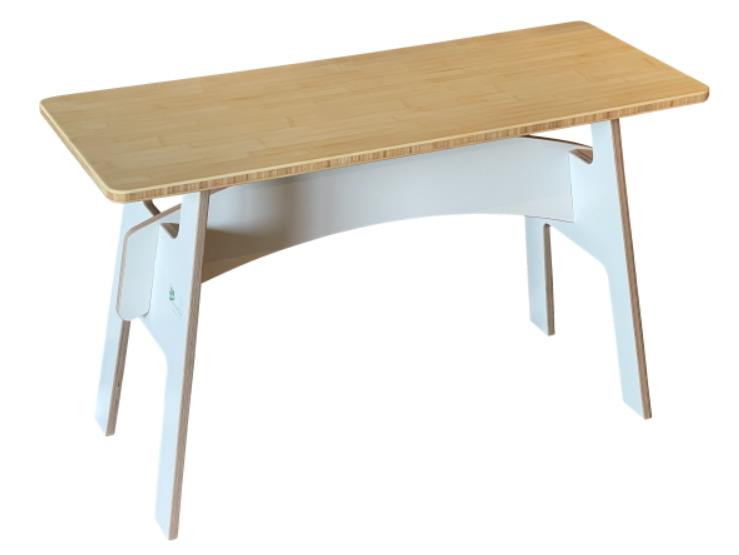 Speels vormgegeven bureautje met een blad van duurzaam bamboe.