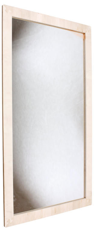 Spiegel met houten lijst, voorzien van veiligheidsglas..