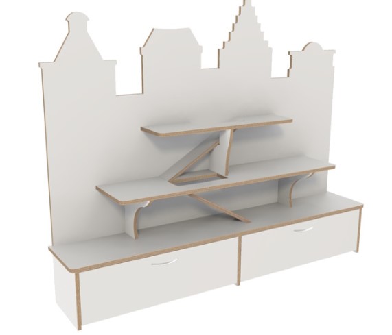 Grote kast die spelen en opbergen combineert.