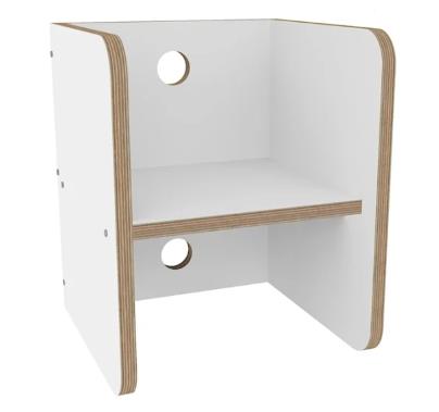Deze superhandige witte stoel voor kinderen is aan alle kanten te gebruiken.