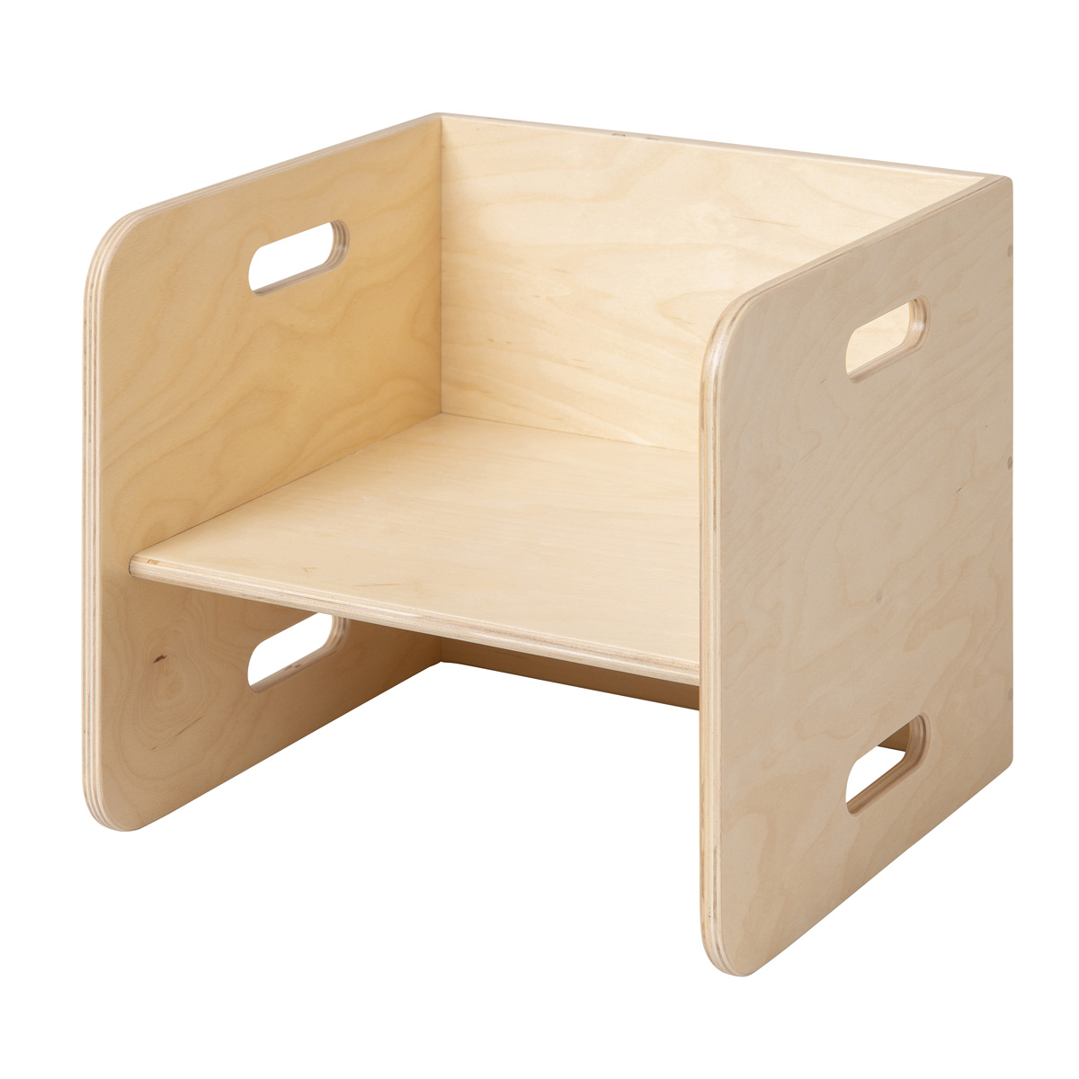 De Kubusstoel is een veelzijdige kinderstoel van hoge kwaliteit, gemaakt van berken multiplex.