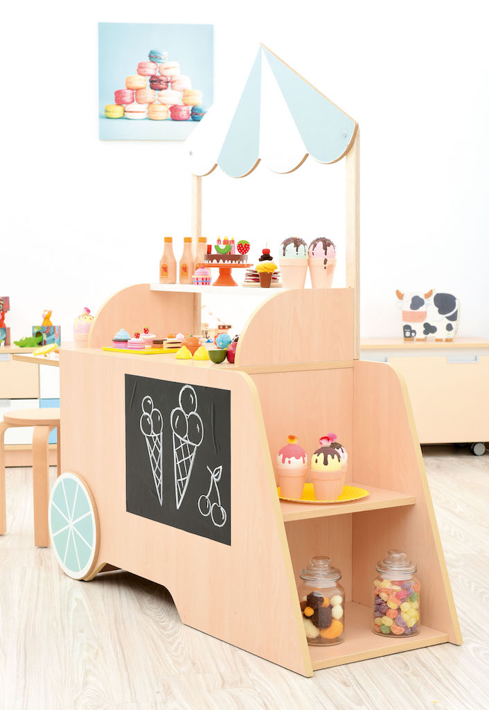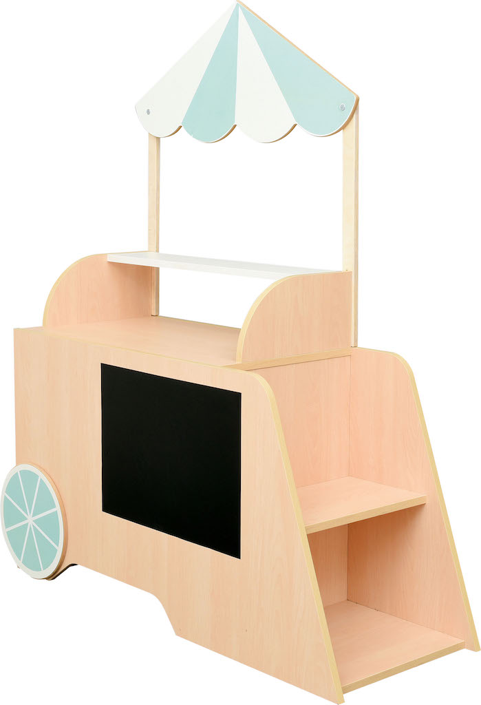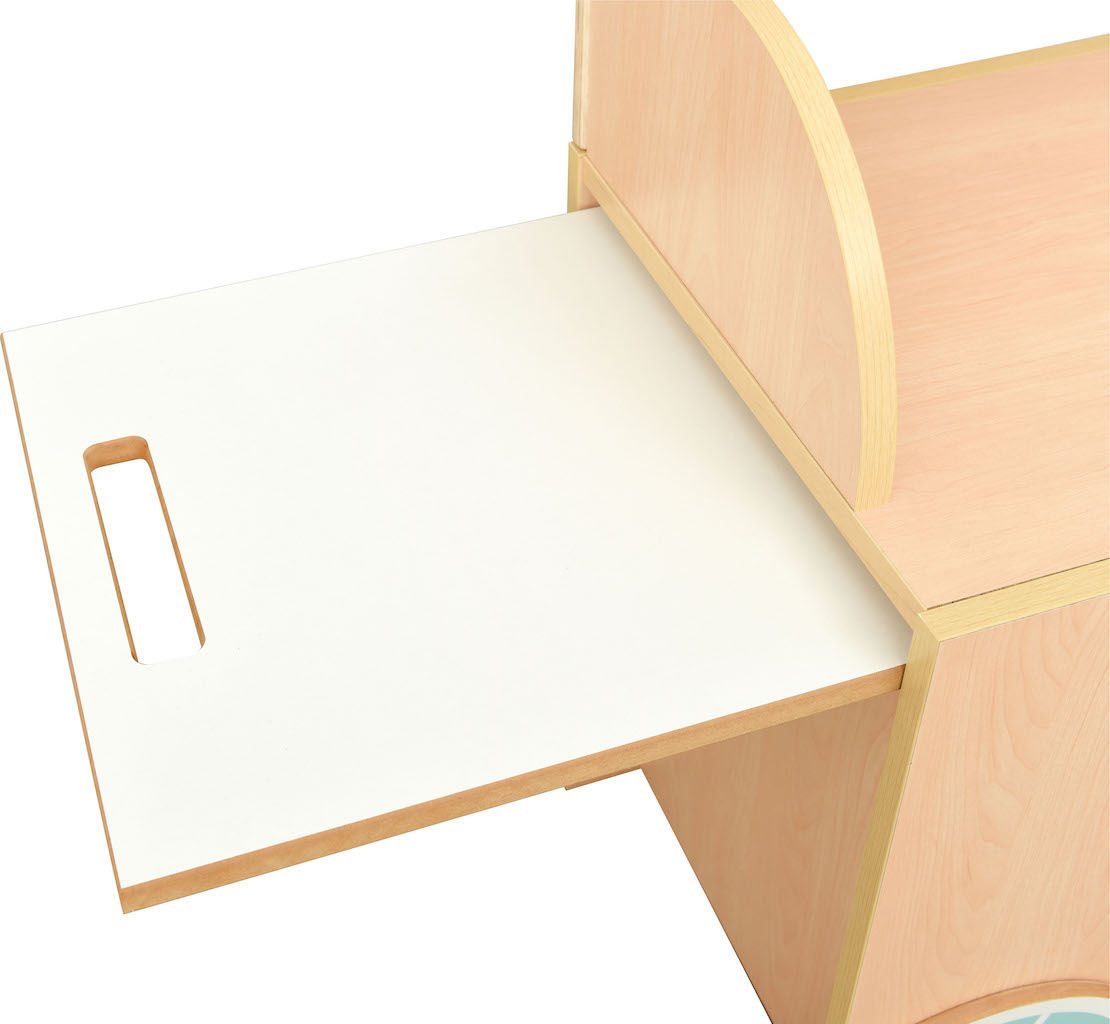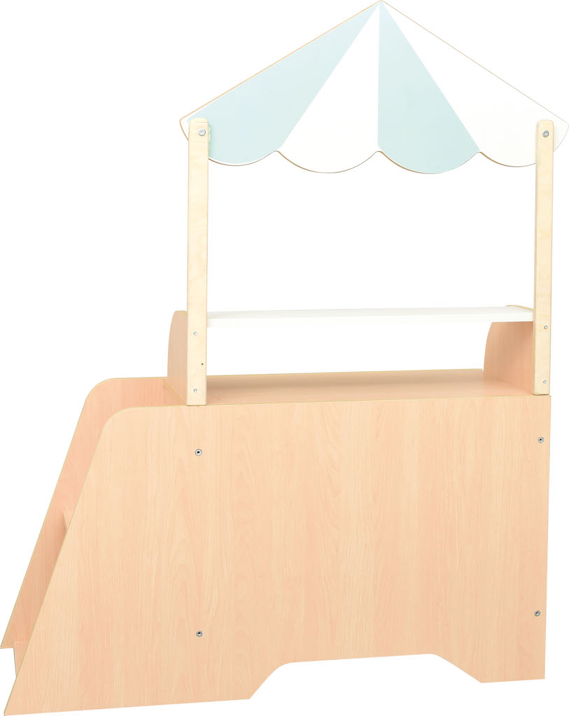 IJssalon met uitschuifbaar plateau uitgevoerd in berken decor 18 mm.