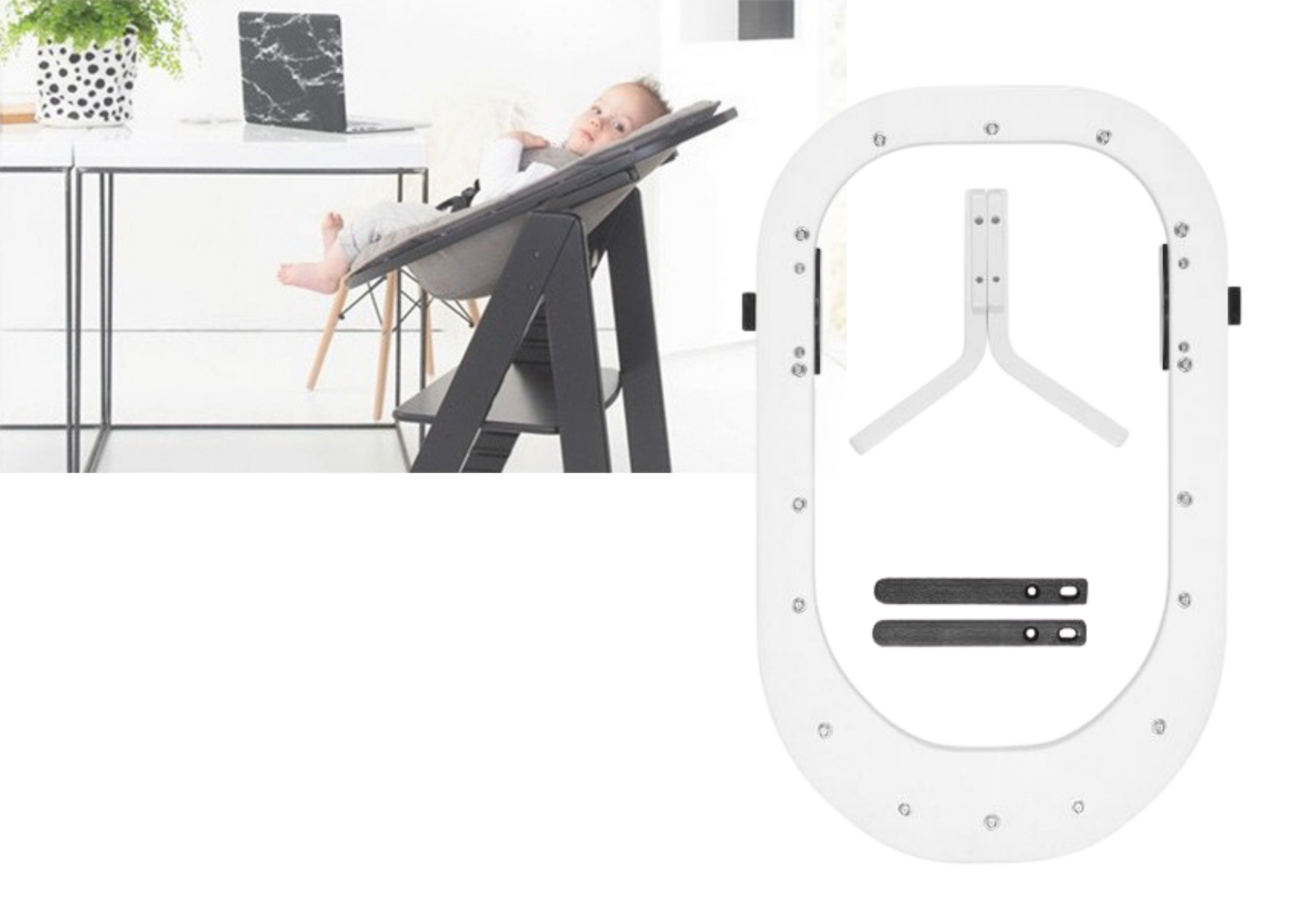 Dankzij het ingenieuze Newborn frame kan uw baby vanaf de geboorte bij de eettafel komen.