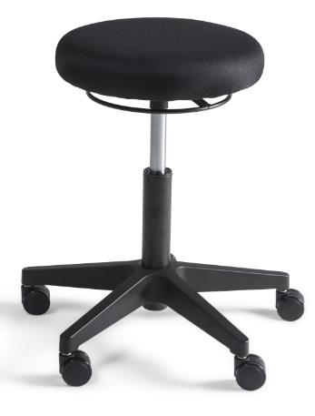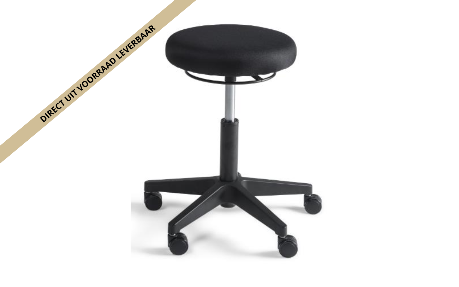 Taboeret met kunstlederen zitkussen is in hoogte verstelbaar door rondom bedienbare ring.