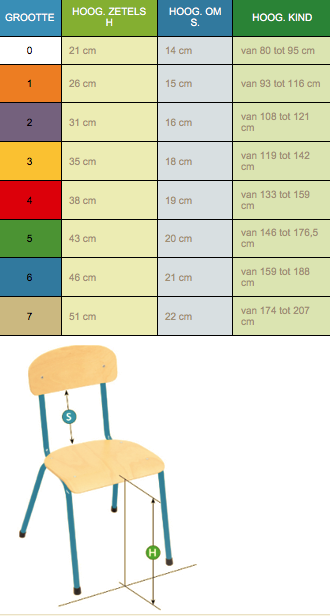Stoel maat 3 = Zithoogte 35cm met zitting en rugleuning van gelakt beuken multiplex 6 mm.