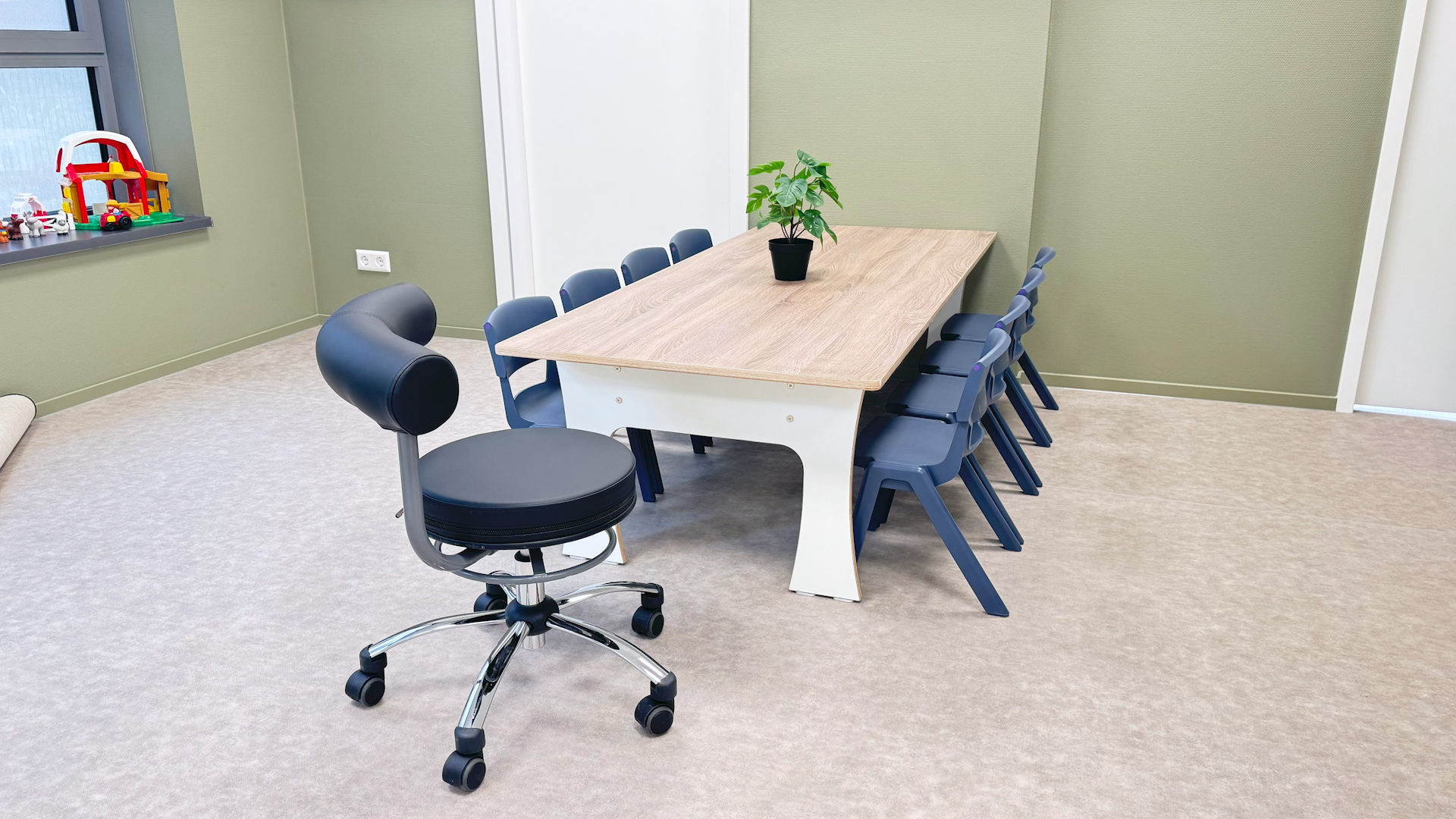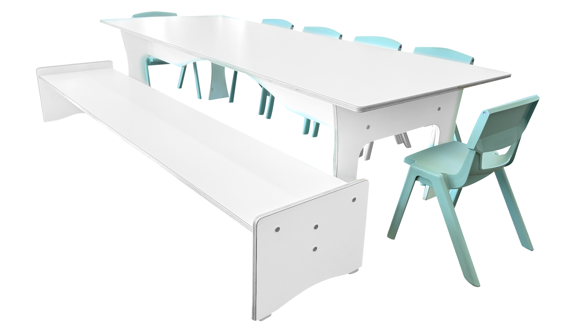 De instructietafel 125 kan met diverse krukjes, stoelen en bankjes