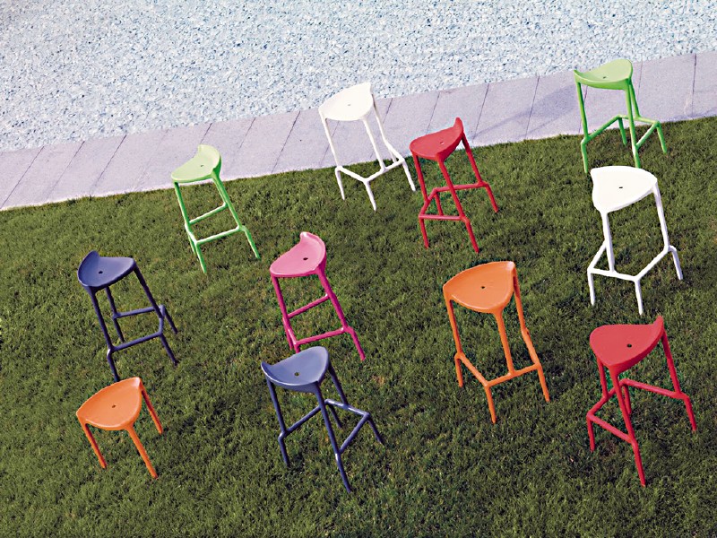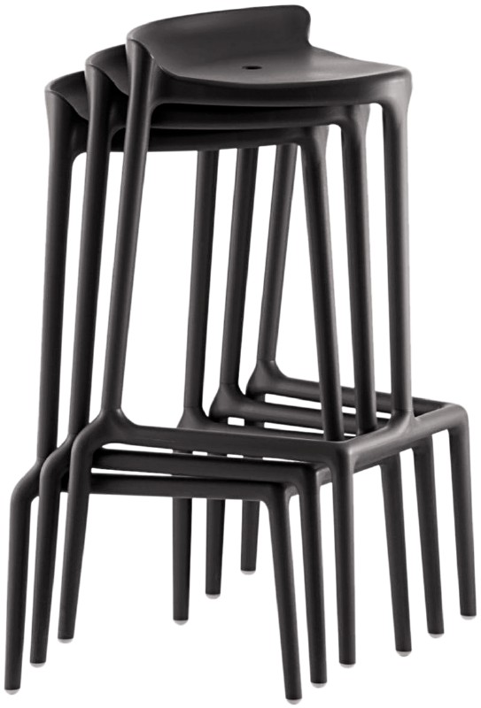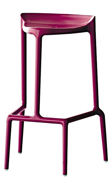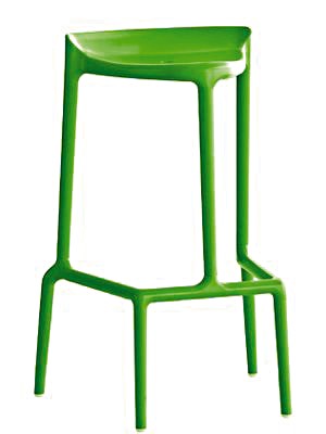 Stapelbare (bar)kruk met ergonomische vorm in stevig polupropyleen.