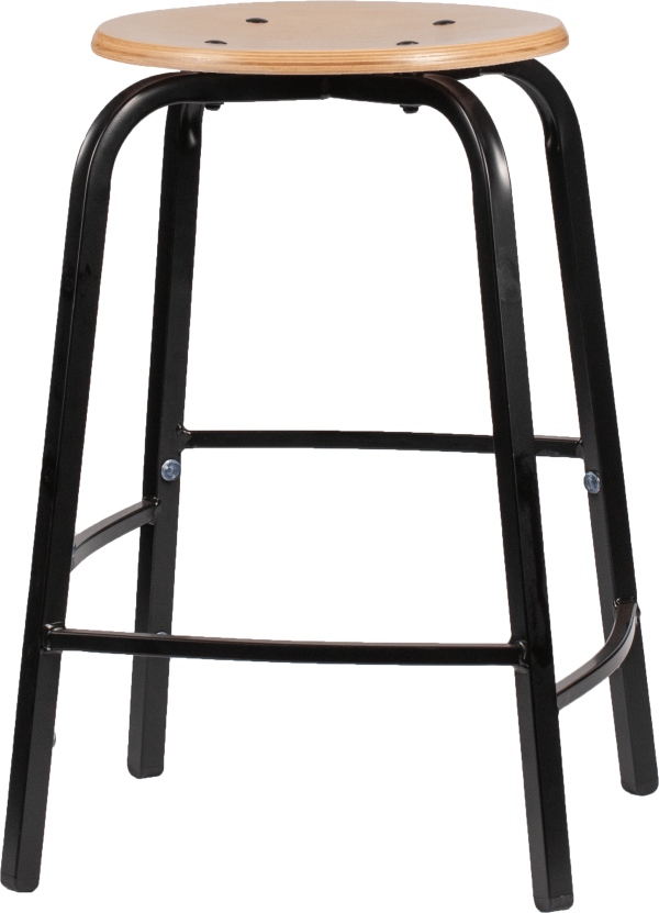 Metalen 4-pootskrukje met verspringende voetsteunen.