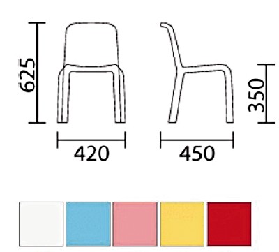 Verkrijgbare in diverse kleuren. Zeer stabiele lichtgewicht stoel met een kleiner en smaller zitvlak. |