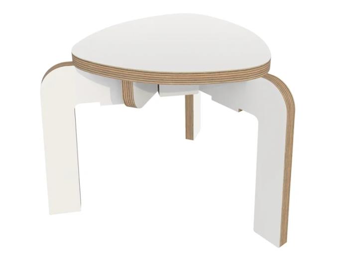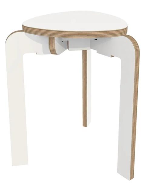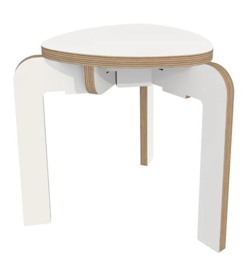 Solide driepoot kruk met een wit onderstel en wit zitpaneel,