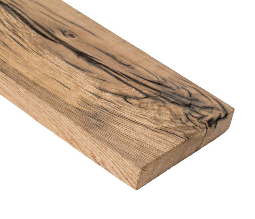 | Eiken Wagondeel Een Eiken Wagondeel vormt een stoere basis voor een robuuste houten plank aan de muur. Na jarenlang gebruik als deklaag op treinstellen worden de doorleefde houten planken vervangen door nieuwe dekplanken. De vaak gehavende en doorleefde eiken wagonplanken worden ontdaan van spijkers en bouten en zijn hierdoor doorspekt met gaten en scheuren. Na het schaven is het hout schoon en vrij van splinters, maar het ingesleten vuil en vet is in de diepe scheuren nog duidelijk zichtbaar. De spijker- en schroefgaten zijn na het uitsteken met de beitel te herkennen als vierkante en ronde beschadigingen, in naturel hout of zwart ingewassen. Door dit wagondeel aan uw muur te plaatsen met onze leren plankendragers heeft u gelijk een geweldige stoere en natuurlijke uitstraling aan uw eigen muur. Kenmerken 1 stuk eiken wagondeel van ca. 90cm (andere lengtes op aanvraag) Behandeling: geschaafd, geschuurd en stofvrij Dikte eiken wagondeel is ca. 45mm Breedte ca. 142mm |