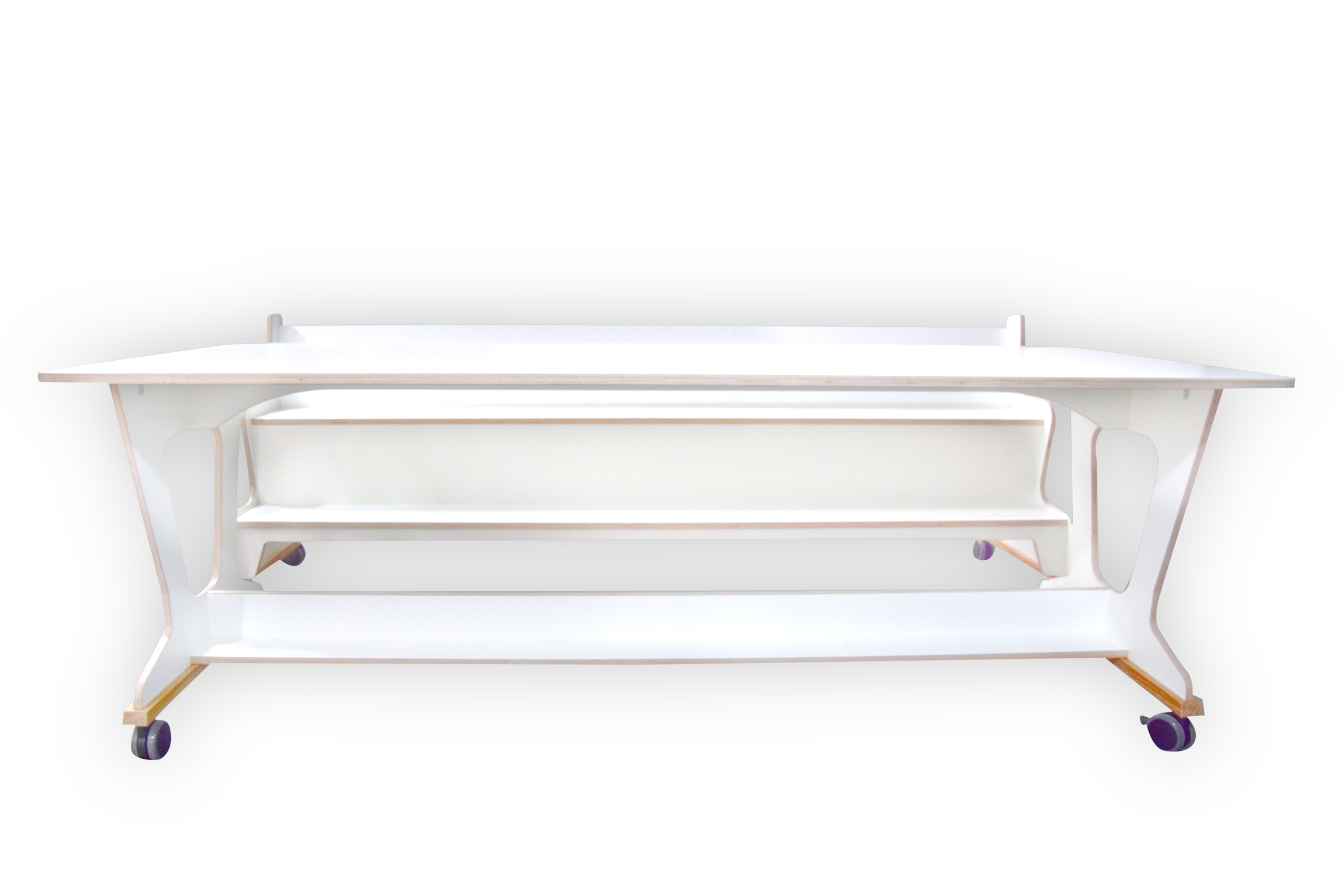 Tafel is opgebouwd uit 18mm berken multiplex met standaard wit hpl toplaag,